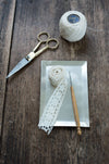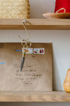 The larger size is useful for cutting paper and fabric, while the smaller one is ideal for cutting thread and labels. **Slight irregularities are characteristic of handmade products.** Do not leave the product wet for extended periods, as this may cause rust or oxidation. Size: 4.5 x 1 x 13 cm
