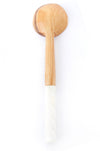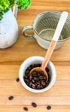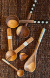 The artisans of Kamba in Kenya hand-carve this beautiful sugar spoon from wild olive wood, a slow-growing tree with a wonderfully grained wood. The handle is adorned with bleached cow bone, hand-carved to resemble the antlers of savannah antelopes such as topi, gazelle, and waterbuck.