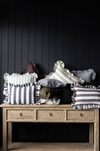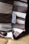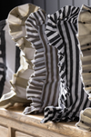Dimensions: 14" L x 20" W Add an elegant touch to any room with our bold brown striped lumbar cushion cover with ruffles. Crafted from high-quality cotton, this cushion features a unique ruffled edge and a striking brown stripe pattern. Elevate your home décor with this luxurious piece. Concealed zipper in the seam This is a handmade product, so please allow for a size tolerance of 2 cm. 100% cotton