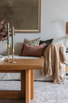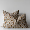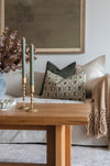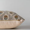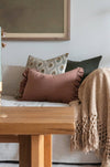 Introducing NOREEN, a new botanical block print featuring swirling green vines on a neutral beige linen with a rustic texture and quality. This eye-catching design stands out in any space, adding both the typical charm of a cottage and a touch of handcrafted artistry. Hand-printed in India, this textile is truly unique and representative of centuries of tradition and craftsmanship.