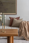 Introducing TILLIE, a new botanical block print featuring a small floral motif on rustic linen. This simple and timeless design stands out in any space, adding both cottage charm and handcrafted artistry. Hand-printed in India, this textile is truly unique and representative of centuries of tradition and craftsmanship. Designed and manufactured by Rug & Weave, in Canada. Front: 100% hand-printed linen Back: 50% linen, 50% cotton Lining: 100% cotton Option "with insert": includes a premium feather and down pillow insert Details : *Please note that due to the handcrafted nature of this textile, slight variations in color and print are to be expected and are a hallmark of a truly handmade product -insert sold separately -YKK exposed brass zipper Interview : -We recommend spot cleaning or dry cleaning only for this product Fa