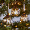 An elegant Christmas bauble in antique silver-effect glass. (Set of 3) These beautiful Christmas baubles will look stunning on your Christmas tree year after year. These Christmas decorations were handcrafted by artisans who are part of an inspiring fair trade organization in India. They are handmade from recycled glass and finished with silver paint to give a vintage touch and a delicate sparkle in the light. Dimensions: 6 cm long, 5.5 cm wide